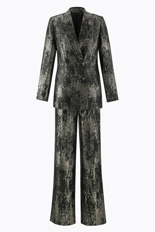 Black and Gold 2 Piece Peak Lapel Double Breasted Women's Prom Suit
