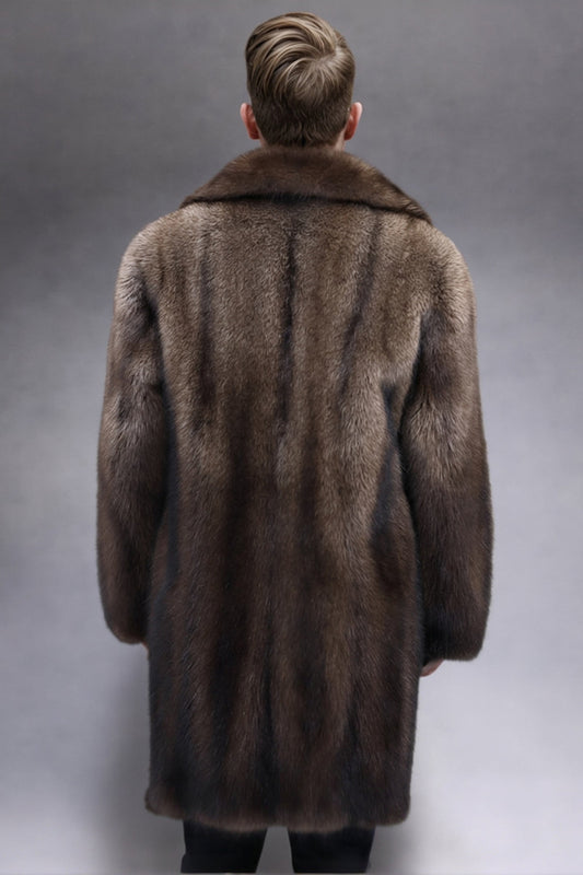 • Camel Notched Lapel Thick Faux Fur Long Men's Coat