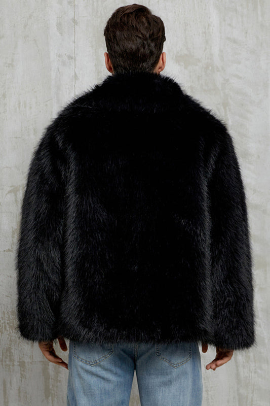 • Black Fluffy Faux Fur Short Winter Men's Coat