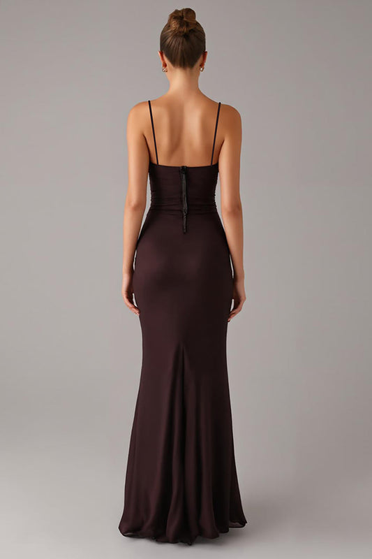 • Brown Mermaid Spaghetti Straps Formal Dress
