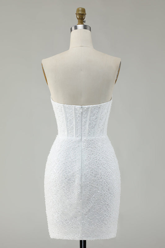 White Strapless Corset Short Bodycon Homecoming Dress with Sequins