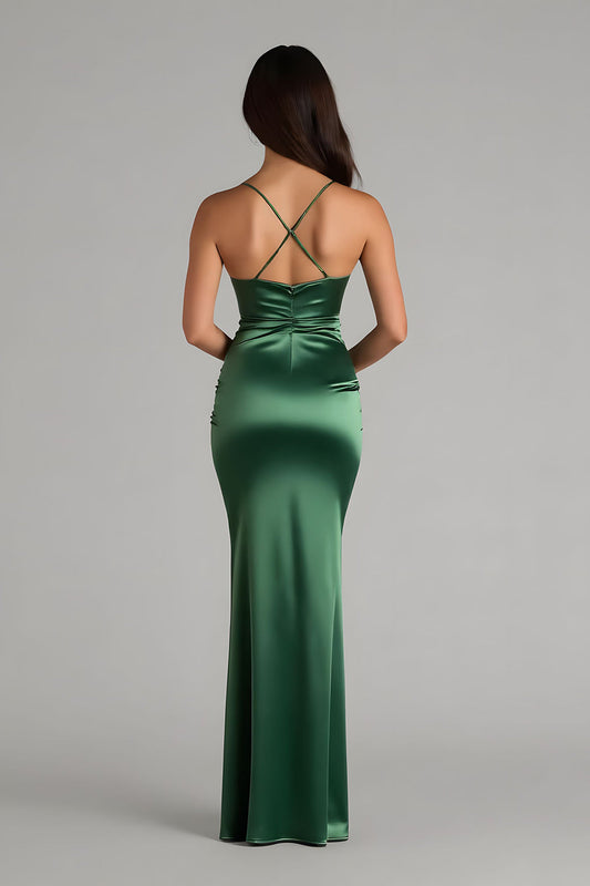 Dark Green Spaghetti Straps Satin Mermaid Long Bridesmaid Dress