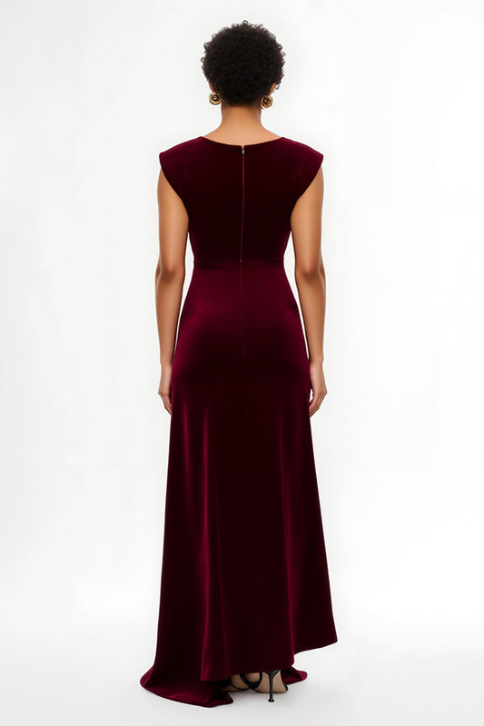 Burgundy Mermaid Bateau Neck Velvet Holiday Dress