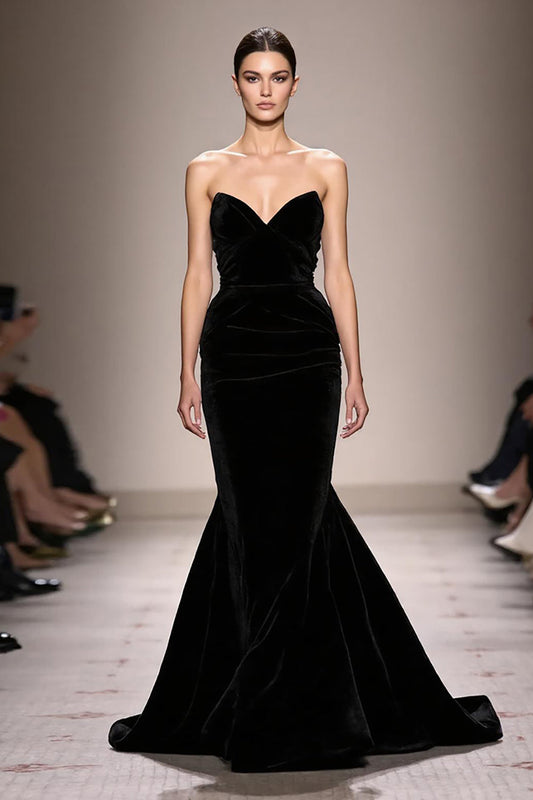 • Black Velvet Mermaid Strapless Long Evening Dress