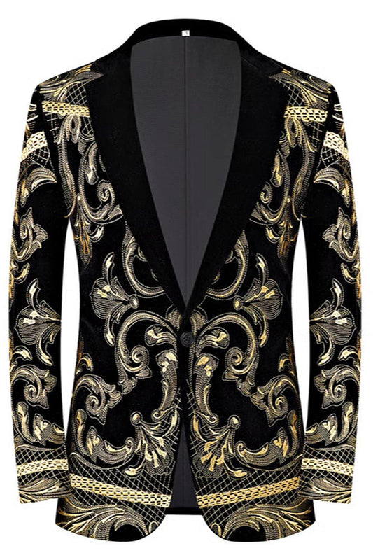 Men's Golden Jacquard 2 Piece Notched Lapel Prom Suits