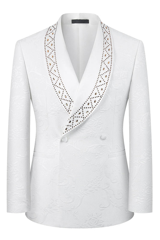 White Shawl Lapel Slim Fit 2 Piece Men's Prom Suit with Beading