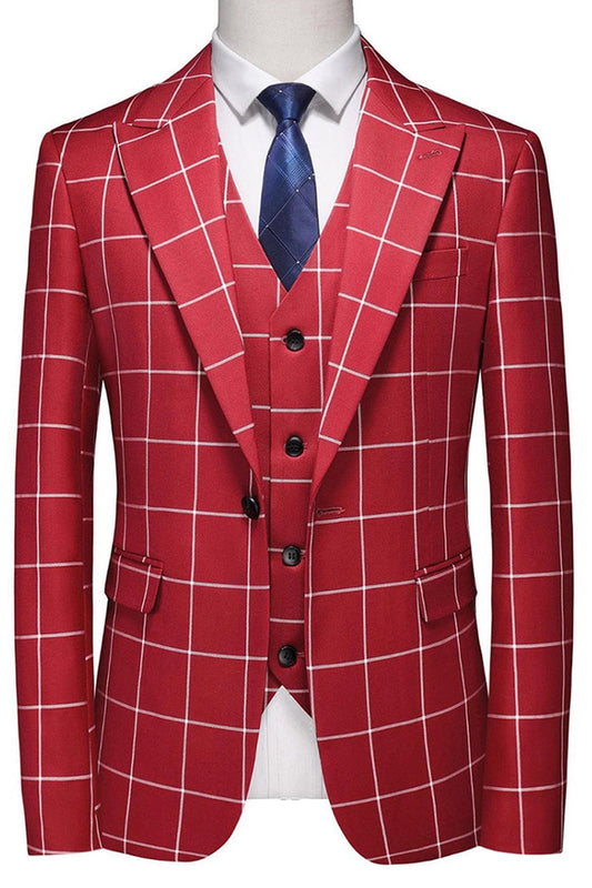 Red Striped Peaked lapel 3 Pieces Men's Prom Suits