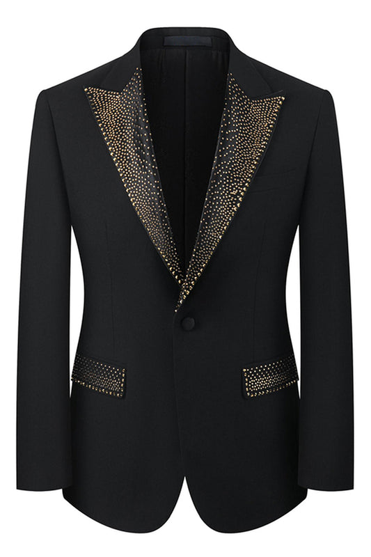 2 Piece Peak Lapel One Button Black Men's Suit with Beading