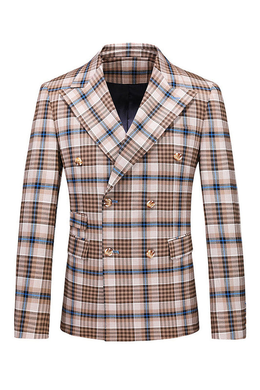 Blue Plaid Peak Lapel 2 Pieces Prom Suits