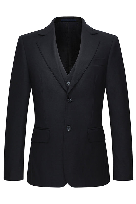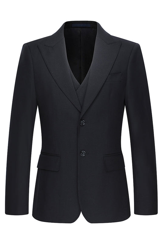 Black Peak Lapel Single Breasted 3 Piece Men's Suits