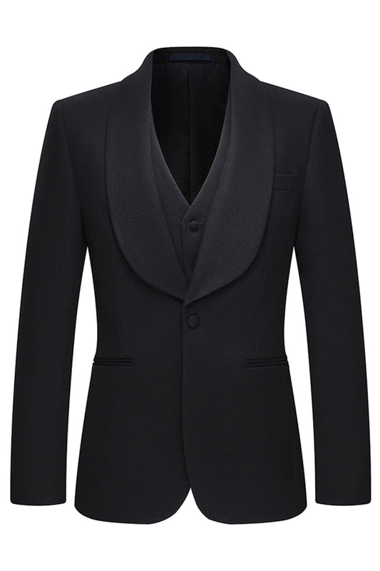 3 Piece Shawl Lapel One Button Black Men's Suits