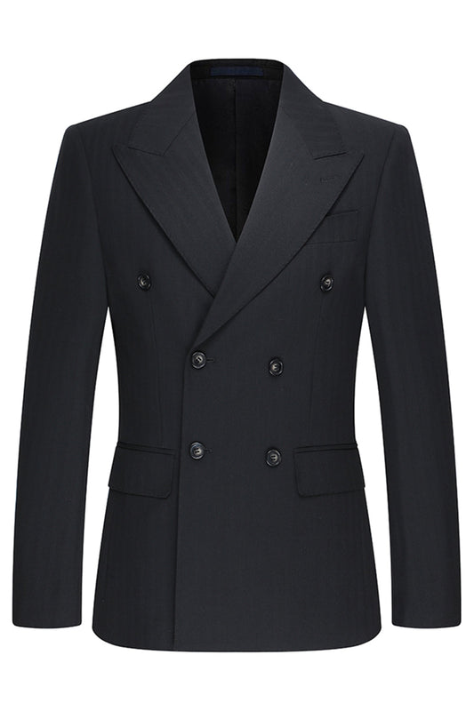 Slim Fit Black 2 Piece Double Breasted Peak Lapel Men's Suits
