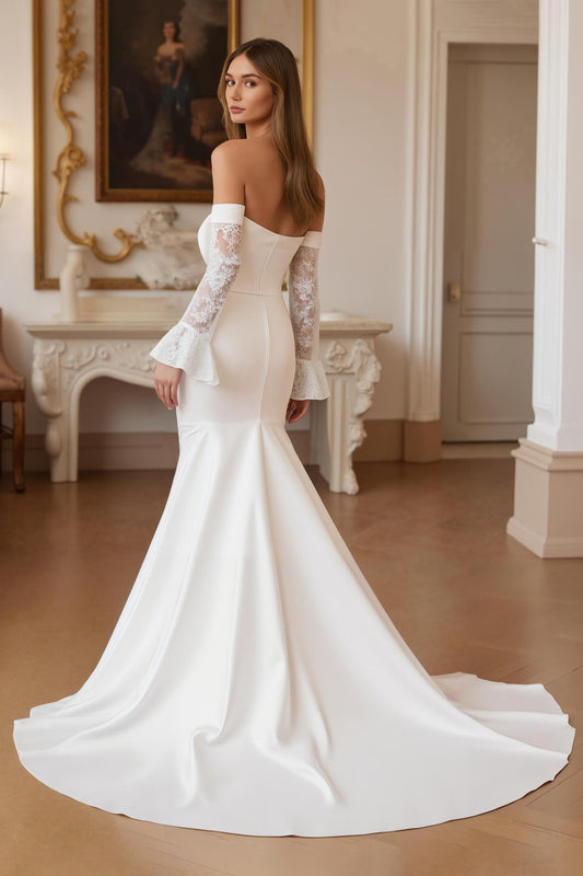 Stretch Satin Ivory Mermaid Off The Shoulder Wedding Dress