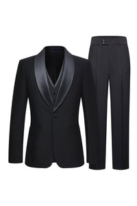 3 Piece Shawl Lapel One Button Black Men's Suits
