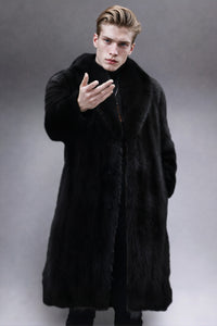 Camel Shawl Lapel Faux Fur Long Men's Coat