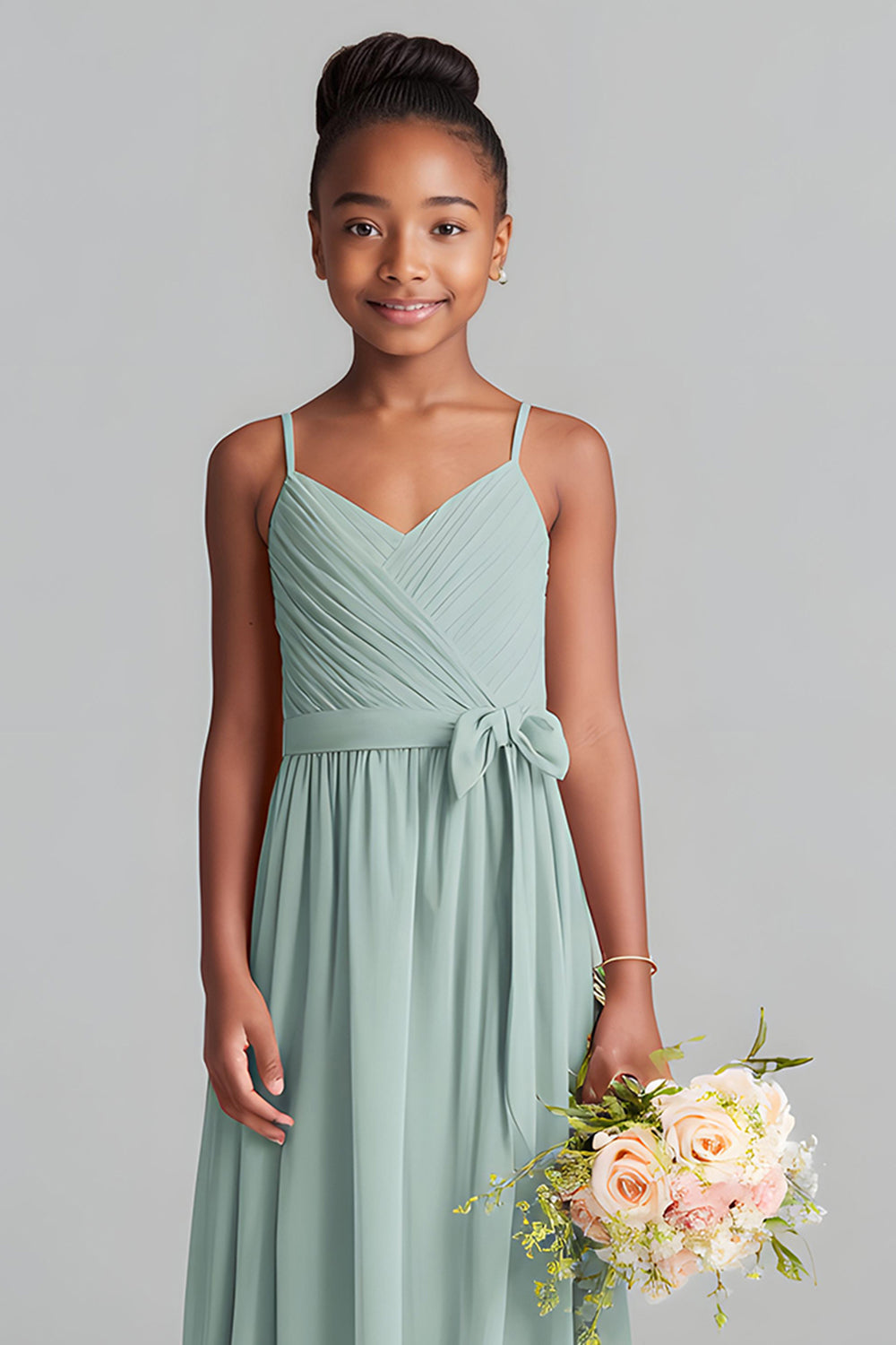 Matcha Spaghetti Straps Chiffon A-Line Long Junior Bridesmaid Dress