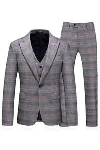 Men's Grey Plaid Peak Lapel 3 Pieces Prom Suits