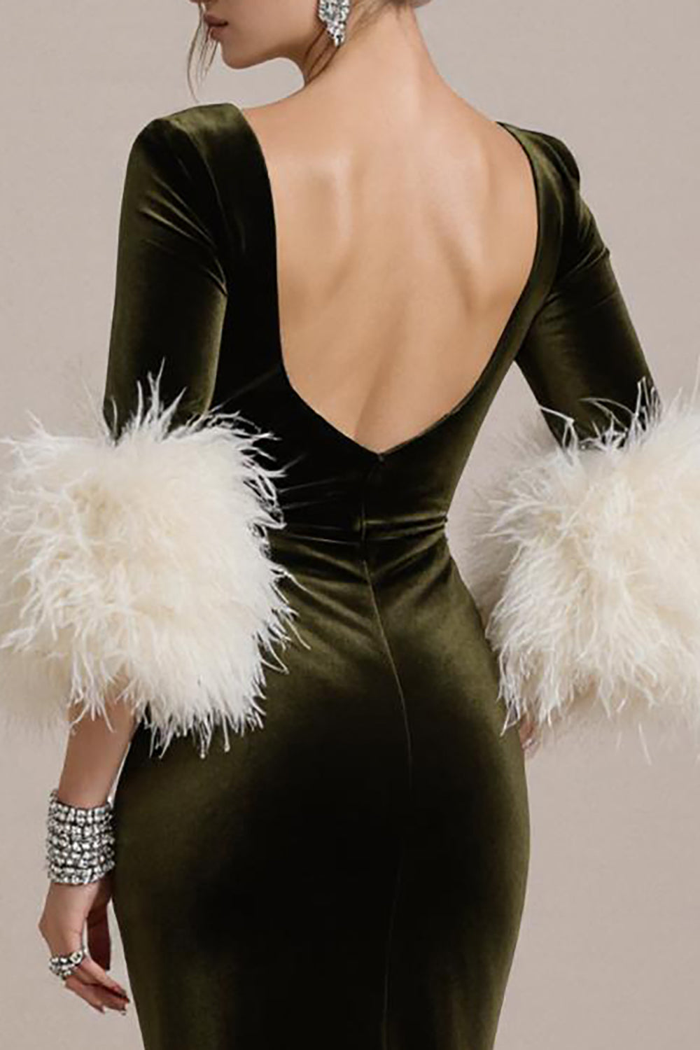 Olive Long Sleeve Mermaid Velvet Pageant Dress
