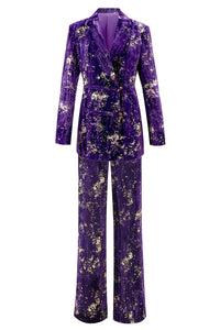 Purple 2 Piece Notched Lapel Women Prom Suits with Sleeves