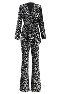 Sparkly Black Slim Fit 2 Piece Women's Prom Suit with Sash