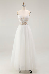 White A Line Spaghetti Straps Engagement Dress With Lace