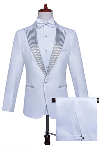 White Peak Lapel 2 Piece One Button Men's Prom Suit with Beading